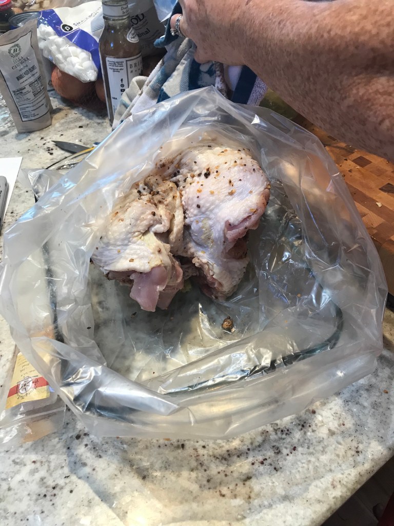 Regent chicken had no recipes that were found in old or new cook books, so I made a basic roast chicken with gravy, from The Settlement Cook Book[11]. This recipe calls for the chicken to be cleaned, spiced up, and placed on its back. Fat is added, along with flour and is cooked for around one hour, while continuously turning. The gravy was made from the liquid in the plan, a little bit of flour, milk, and salt and pepper. This was served with the gravy on the side, in order to not overly saturate the chicken or weigh it down.